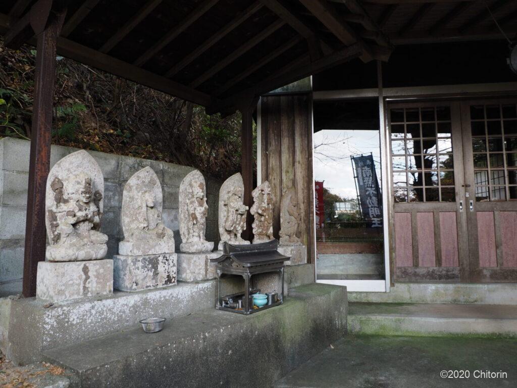 クルマを道ばたの広いところに駐めて、参道の坂道を上がっていくと、風師山不動明王院磨心堂がある。