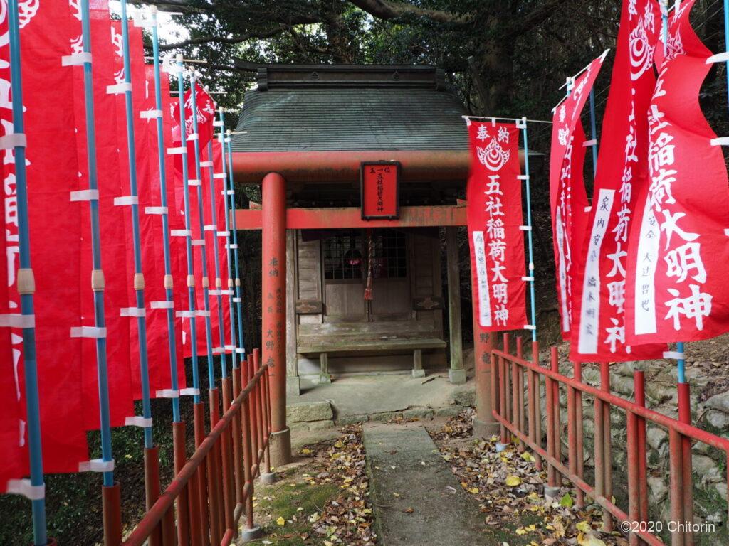 すると、すぐに風師山不動明王院の旗と奥の色付いた紅葉が目に入ったので、一旦駐めて歩いてみることにする。